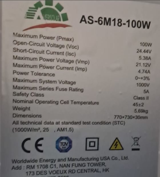 Panel Solar de 100W. Importado. Calidad A (profesional)